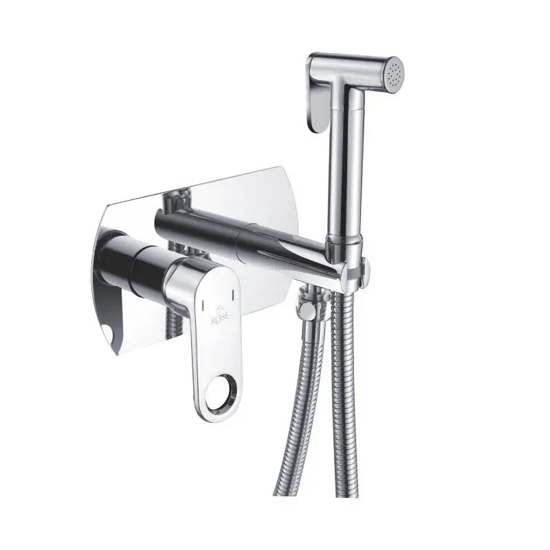 Гигиенический душ со смесителем Rose R205, хром. Управление: рычажное. Материал: латунь. Монтаж: внутренний (скрытый).