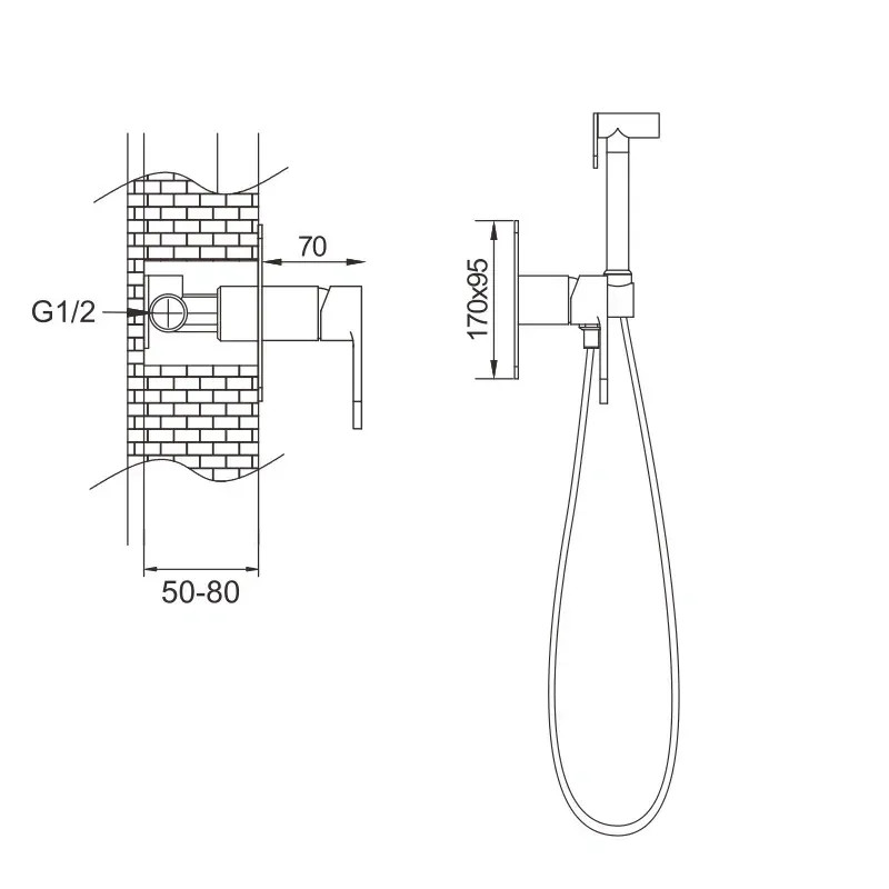 Комплектация: смеситель, внутренняя часть, шланг, лейка, шланговое подключение;