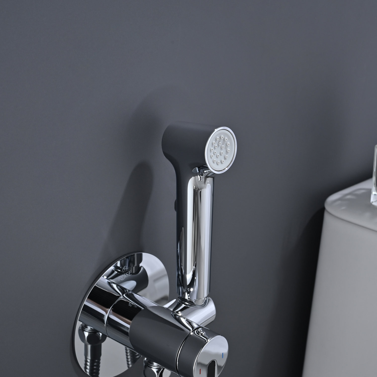 Гигиенический душ Rose R235 в цвете хром — это стильное и функциональное решение для вашей ванной комнаты. Латунный корпус обеспечивает прочность и долговечность, а керамический картридж и рычажное управление гарантируют плавное и точное регулирование температуры и напора воды.