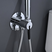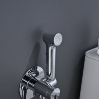 Гигиеническая лейка выполнена из ABS пластика. Держатель лейки расположен непосредственно на корпусе смесителя, обеспечивая удобство использования и предотвращая случайное падение лейки.