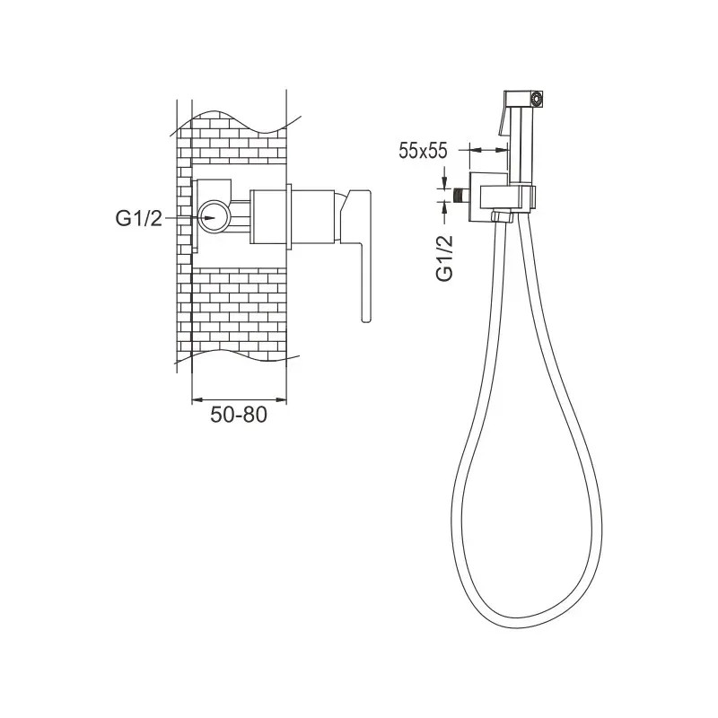 Комплектация: смеситель, внутренняя часть, шланг, лейка, шланговое подключение;