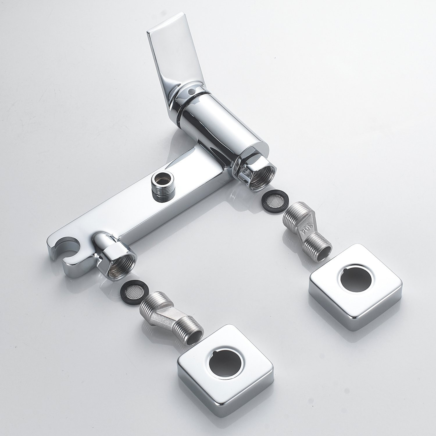 Комплектация: смеситель, лейка, шланг, эксцентрики, декоративные чашки;