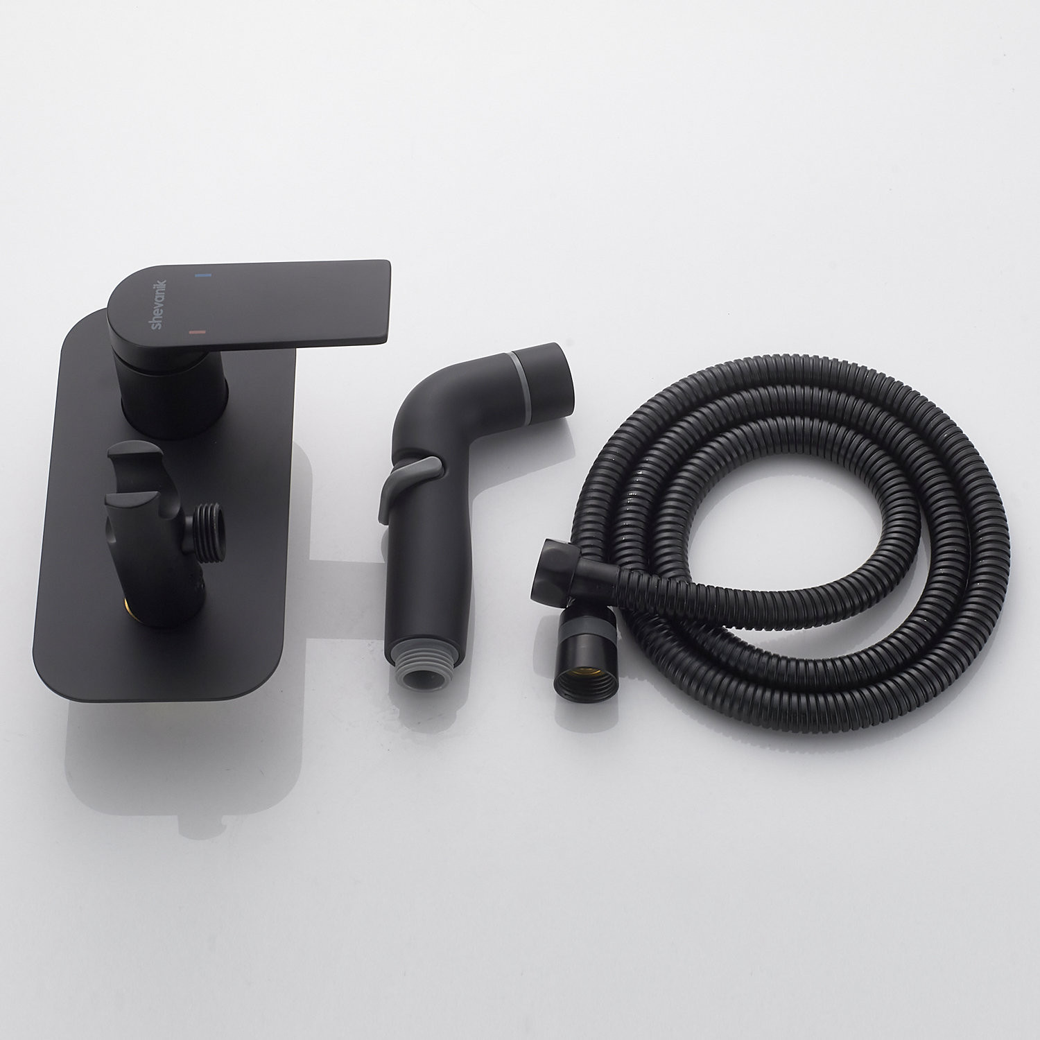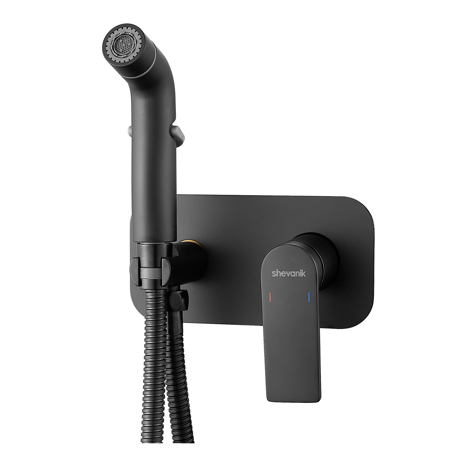 Гигиенический душ со смесителем Shevanik S4105H в черном матовом цвете — это идеальное решение для вашей ванной комнаты, сочетающее в себе элегантность и функциональность. Смеситель выполнен из прочной латуни, что гарантирует его долговечность и надежность. Благодаря скрытому монтажу в стену, он обеспечивает аккуратный и современный внешний вид, а керамический картридж и рычажное управление делают его использование легким и удобным.