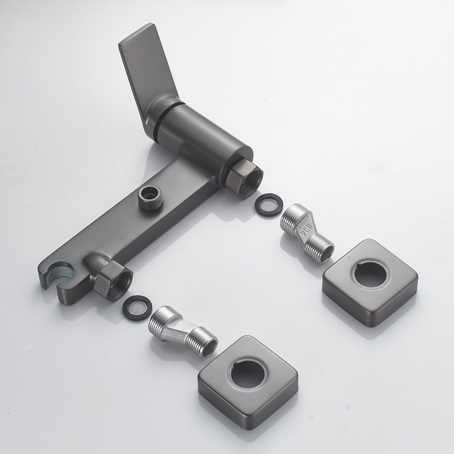 Гигиенический душ Shevanik со смесителем угловатой формы изготовлен из высококачественной латуни, обеспечивая прочность и долговечность. Уникальная конструкция корпуса смесителя выполнена в виде полочки для дополнительного удобства и хранения личных гигиенических принадлежностей.