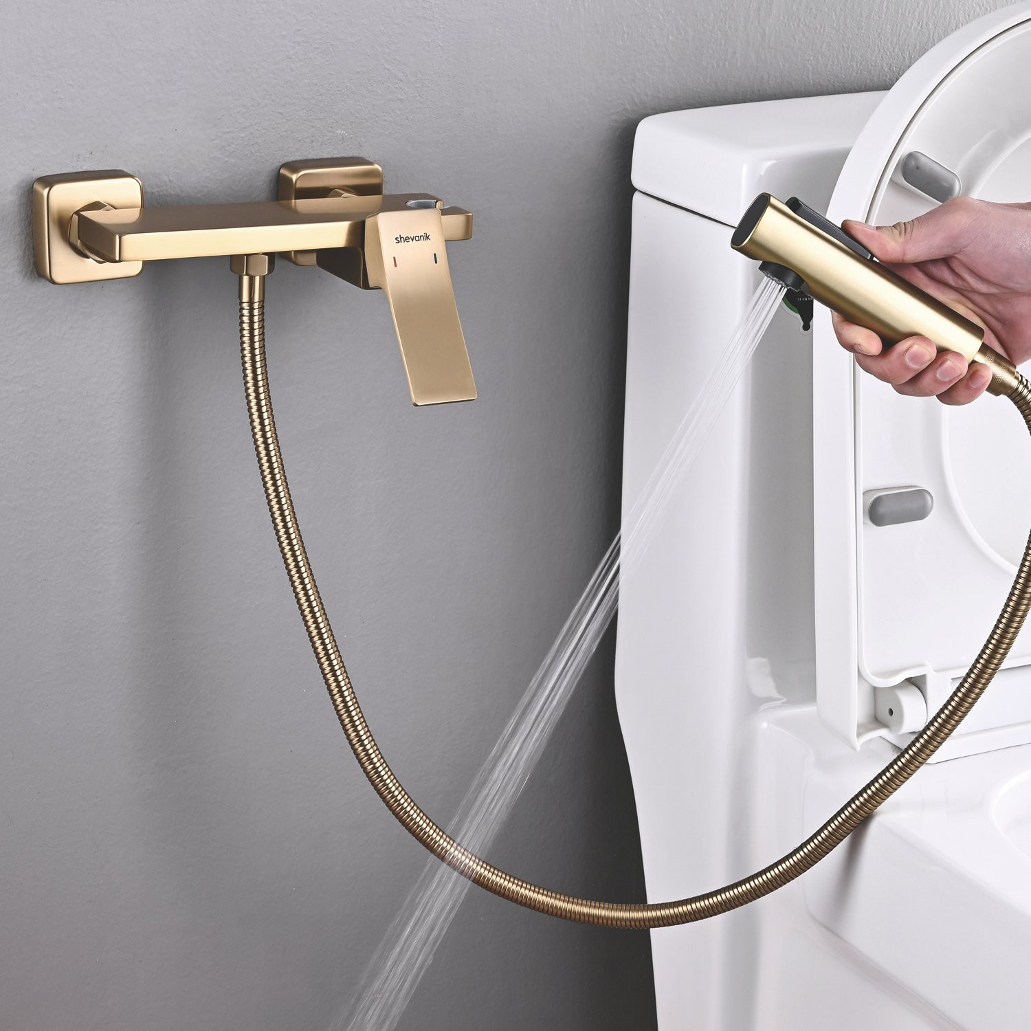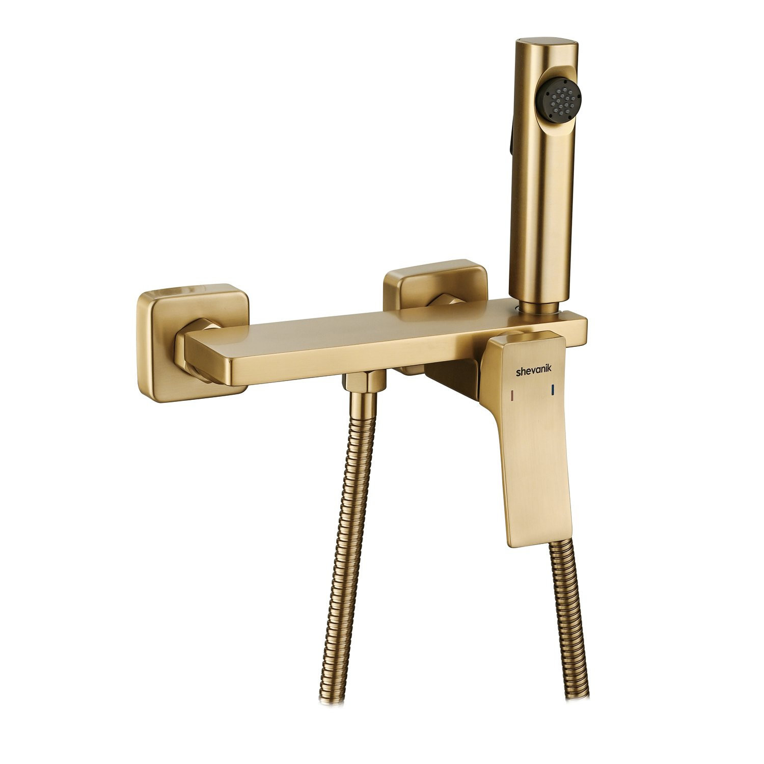 Гигиенический душ со смесителем Shevanik S6105G-1 в цвете "золотой сатин" изготовлен из высококачественной латуни, обеспечивая прочность и долговечность. Уникальная конструкция корпуса смесителя выполнена в виде полочки для дополнительного удобства и хранения личных гигиенических принадлежностей.