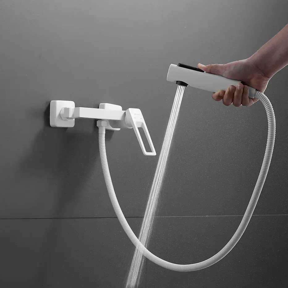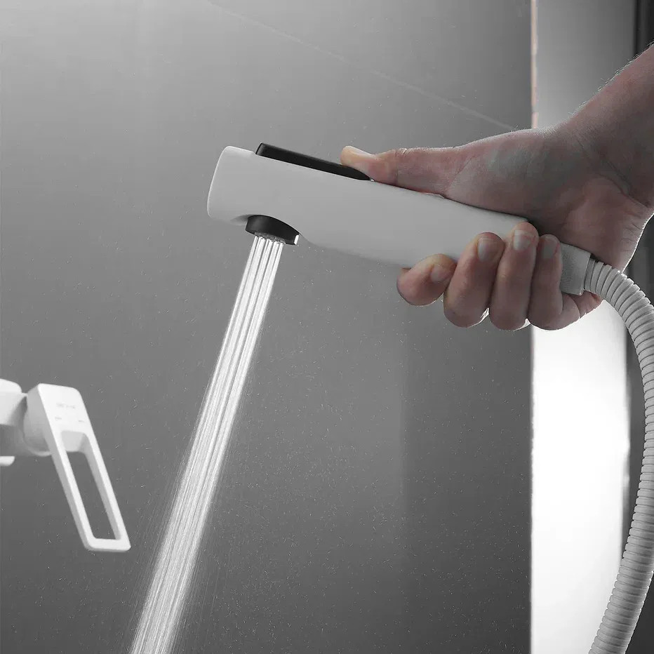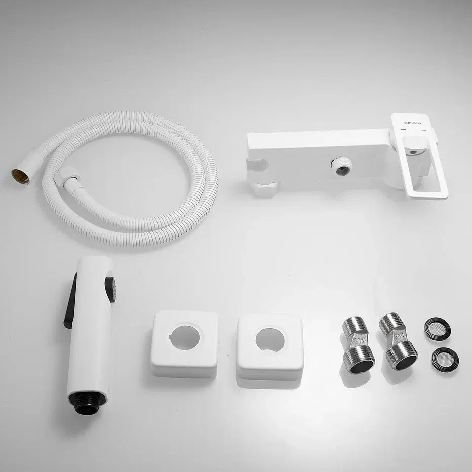 Гигиенический душ со смесителем Shevanik S6805С-1, белый. Материал: латунь. Гарантия: 5 лет. Длина шланга: 150 см.