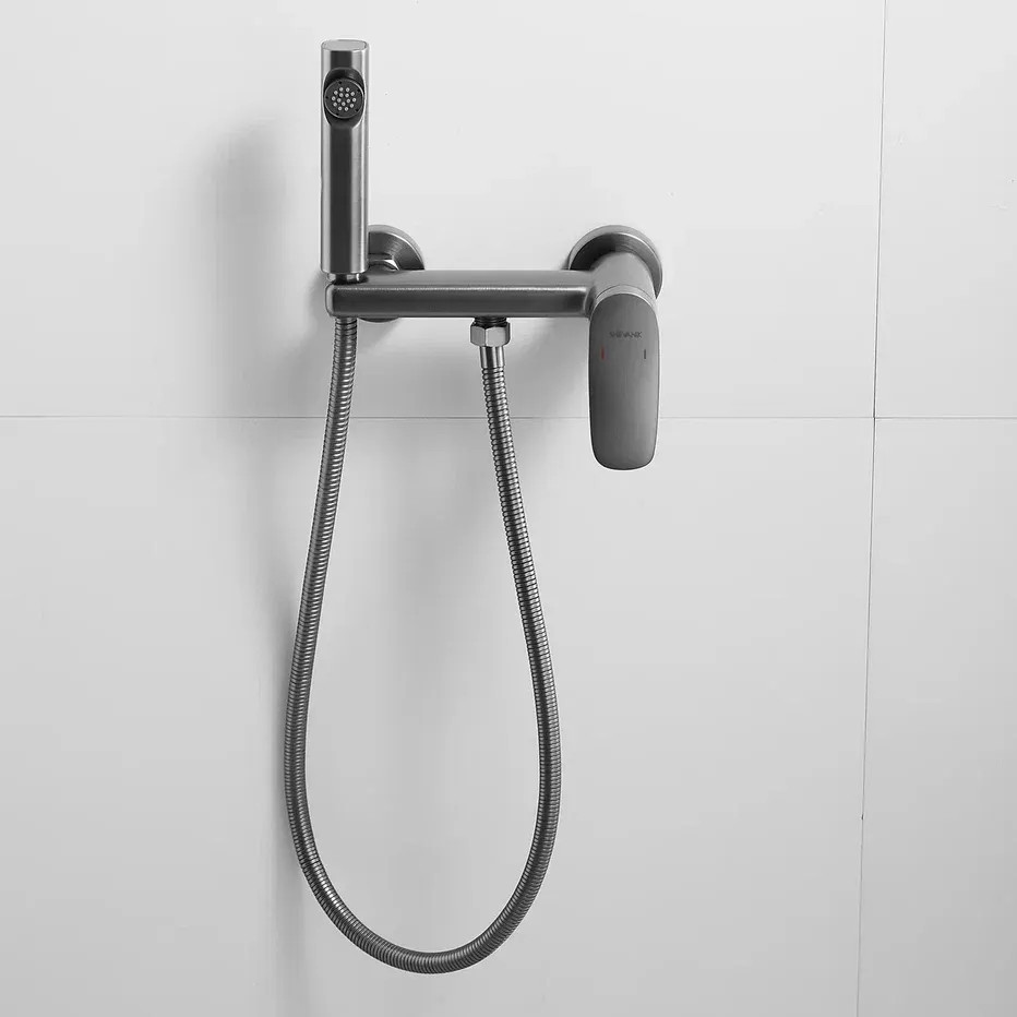 Гигиенический душ со смесителем Shevanik S8505T-1, оружейная сталь. Материал: латунь. Гарантия: 5 лет. Длина шланга: 100 см.