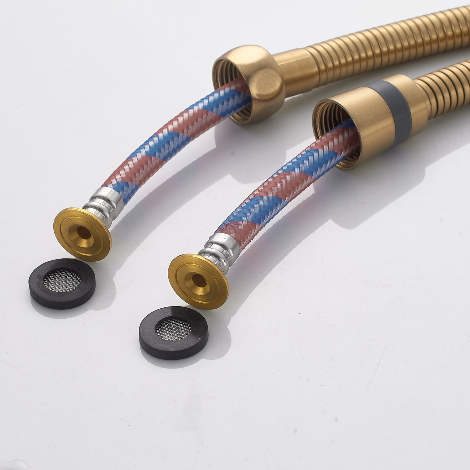 Лейка гигиенического душа выполнена из ABS пластика, её держатель удобно расположен на корпусе смесителя, что способствует удобному использованию. В комплект входит шланг в двойной металлической оплетке длиной 120 см, который отличается надежностью и защищает от повреждений.