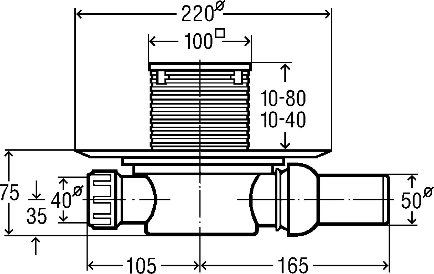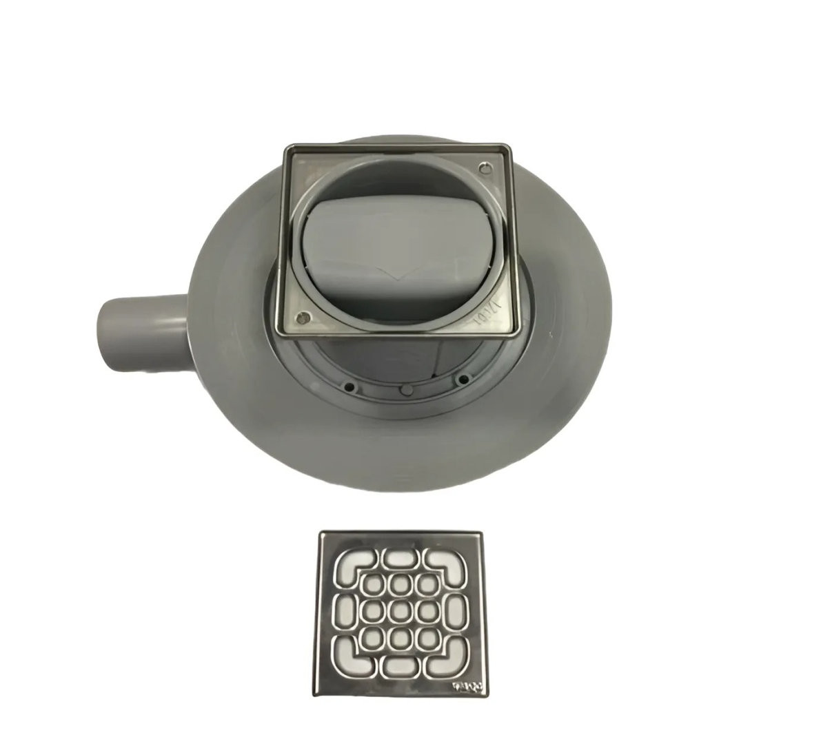583248 Advantix трап, "сухой" затвор, решетка из нерж.100х100 мм (насадка с установ. рамкой из нержав., В=10-80 мм), 0,4 л/сек., пласт/серый