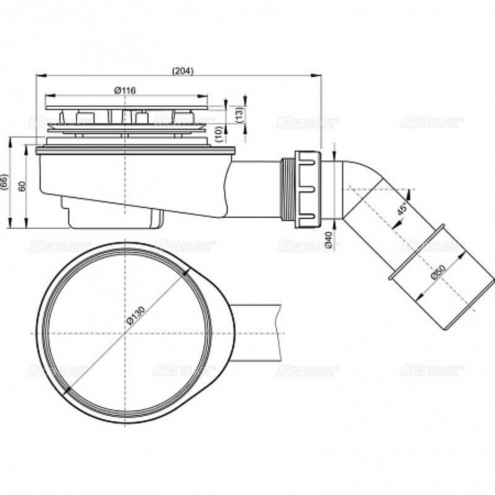 Низкий сифон для толстостенного душевого поддона, хром, арт.A492CR