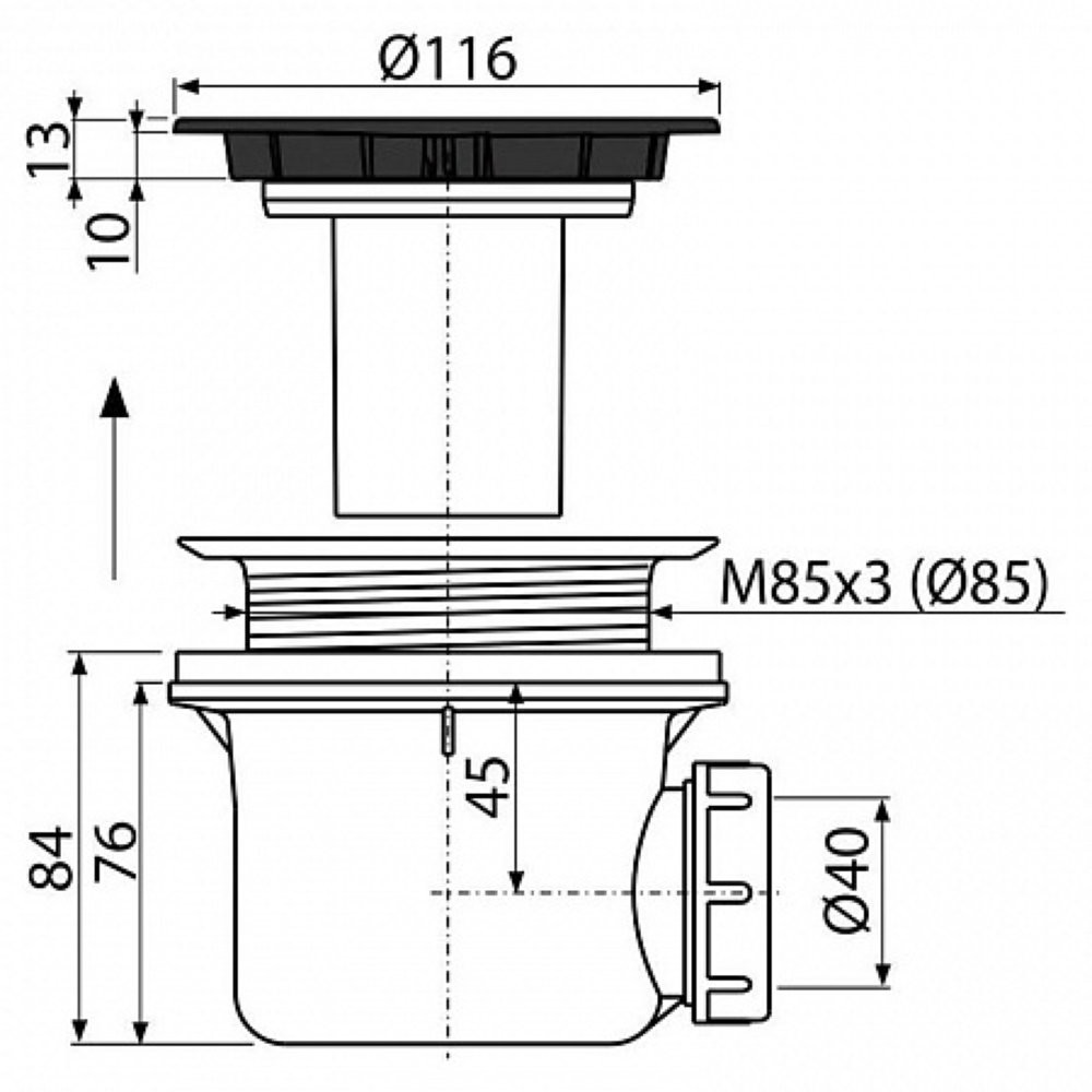 Сифон для душевого поддона, черный- мат, арт.A49BLACK