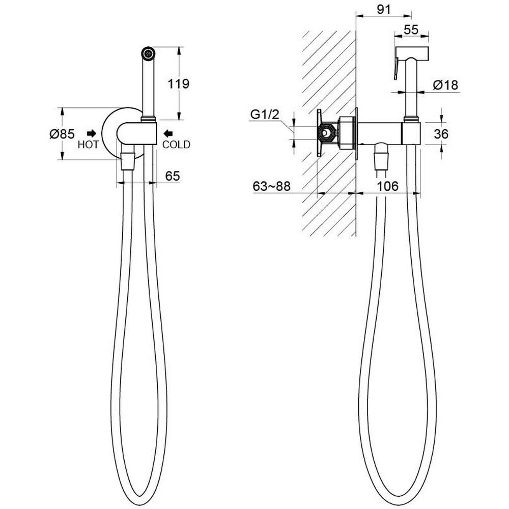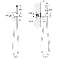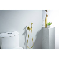 AQ1024BG ОБЕРОН комплект для гигиенического душа встроенный (смеситель c прогрессивным картриджем + гигиеническая лейка + шланг), шлиф. золото