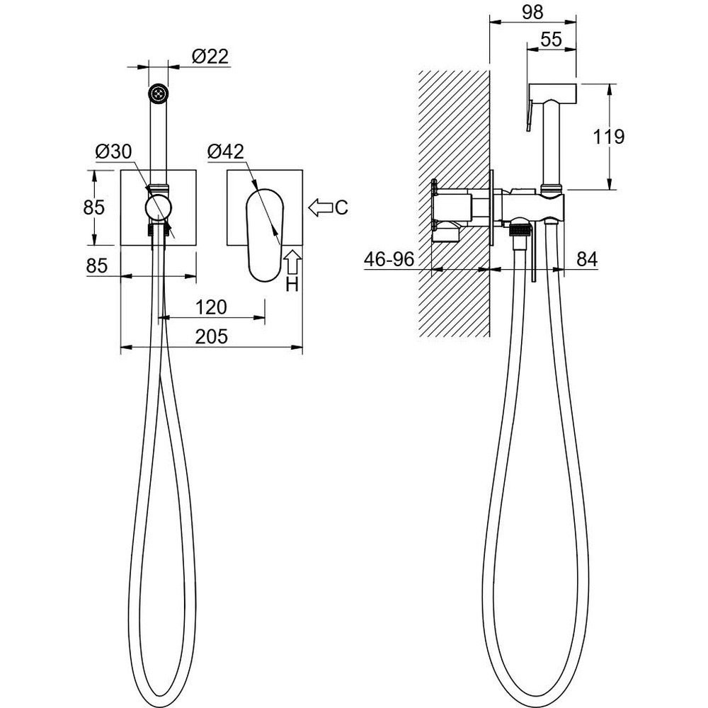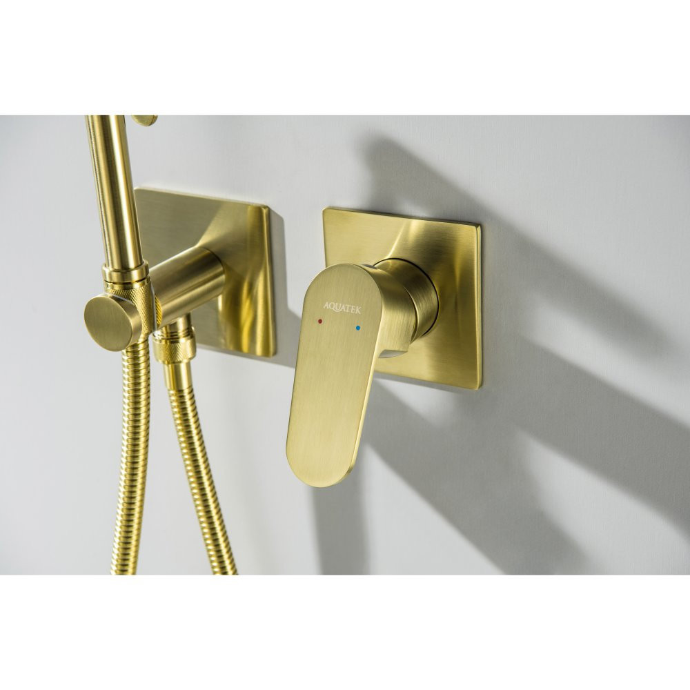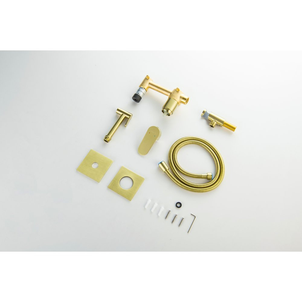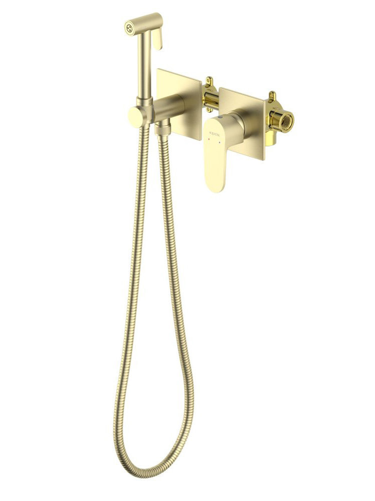 AQ1220BG ОБЕРОН комплект для гигиенического душа встроенный 2 отв. (смеситель + гигиеническая лейка + шланг), шлиф. золото