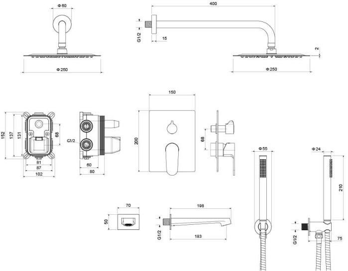 AQ1273MB ОБЕРОН Set 4 в 1 душевой комплект 3 режима, матовый черный
