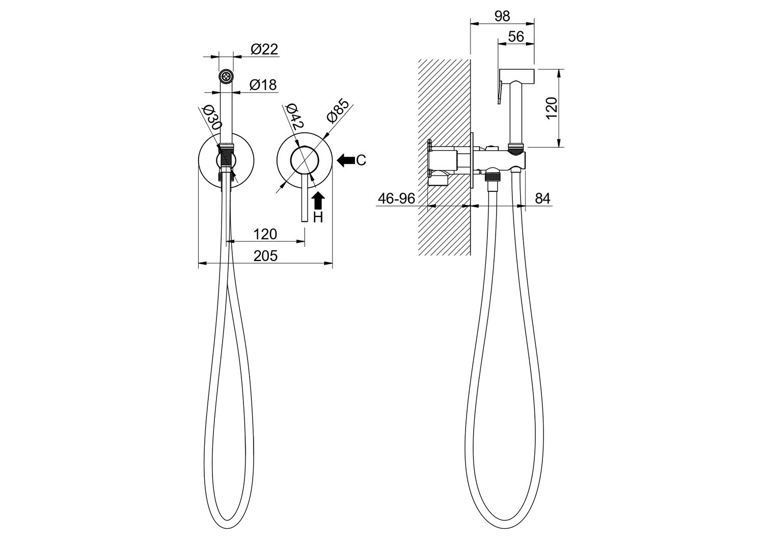 AQ1319BG ЕВРОПА комплект для гигиенического душа встроенный 2 отв. (смеситель + гигиеническая лейка + шланг), шлиф. золото