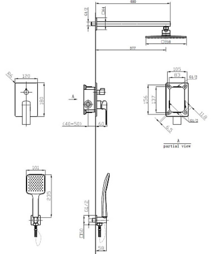 Душевая система скрытого монтажа 6в1 «Samara», арт. 6in1SMR, ESKO (старый арт 6in1 SQ)