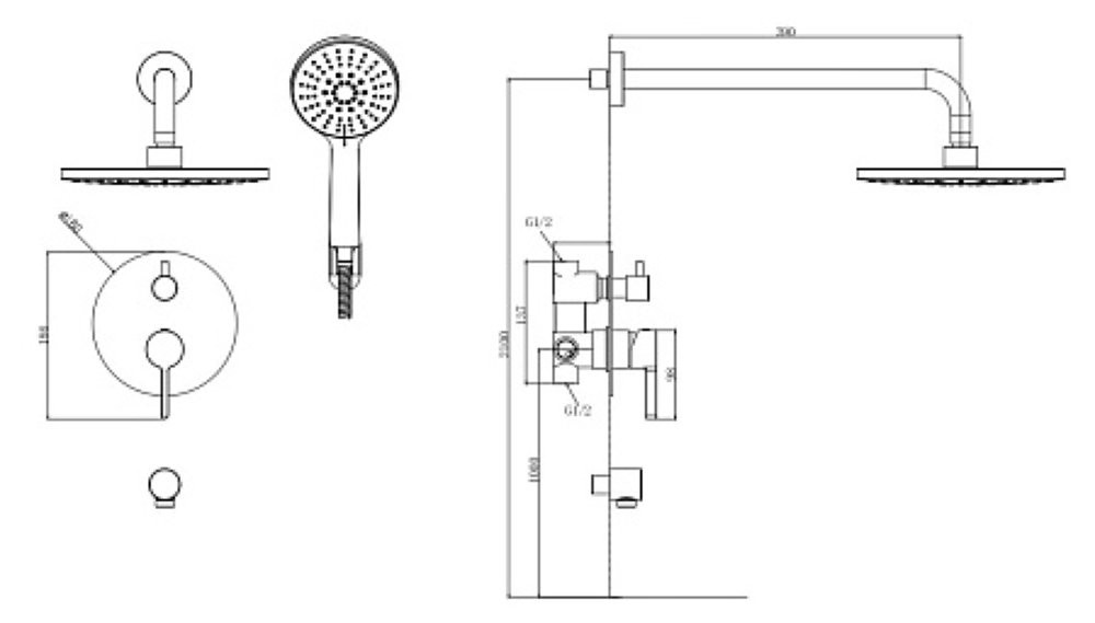 Душевая система скрытого монтажа, арт. Vessel Black Set_3in1, VODA