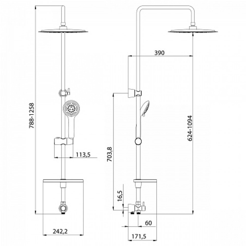 Душевой гарнитур Lemark LM8802C без смесителя c верхней душевой лейкой "Тропический дождь", хром