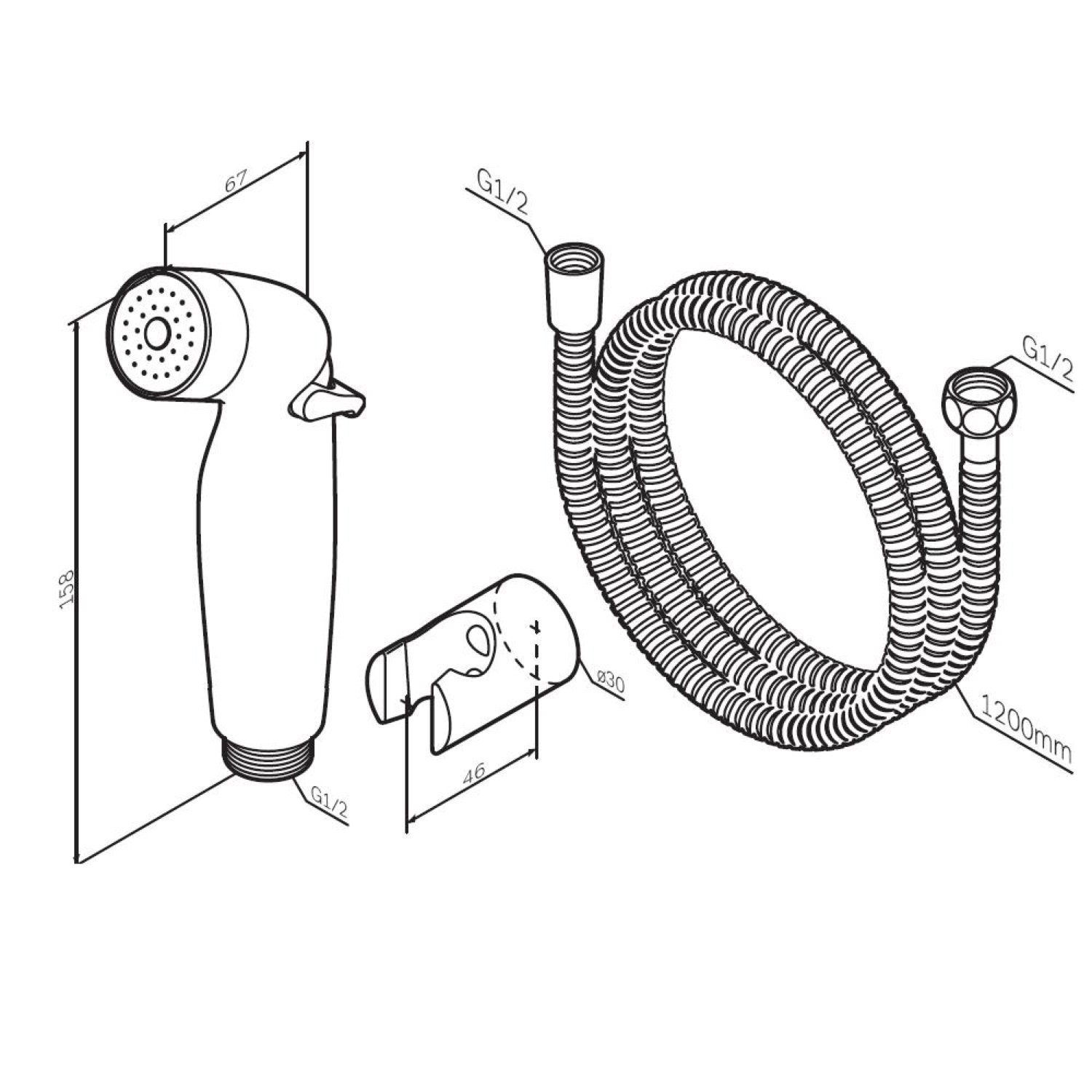Гигиеническая лейка в комплекте с шланговым подсоединением-держателем и шлангом. Шарнирное соединение защищает душевой шланг от перекручивания. Гибкая конструкция, защищенная от изломов и повреждений. Удобная для комфортного использования длина шланга 1200 мм. |