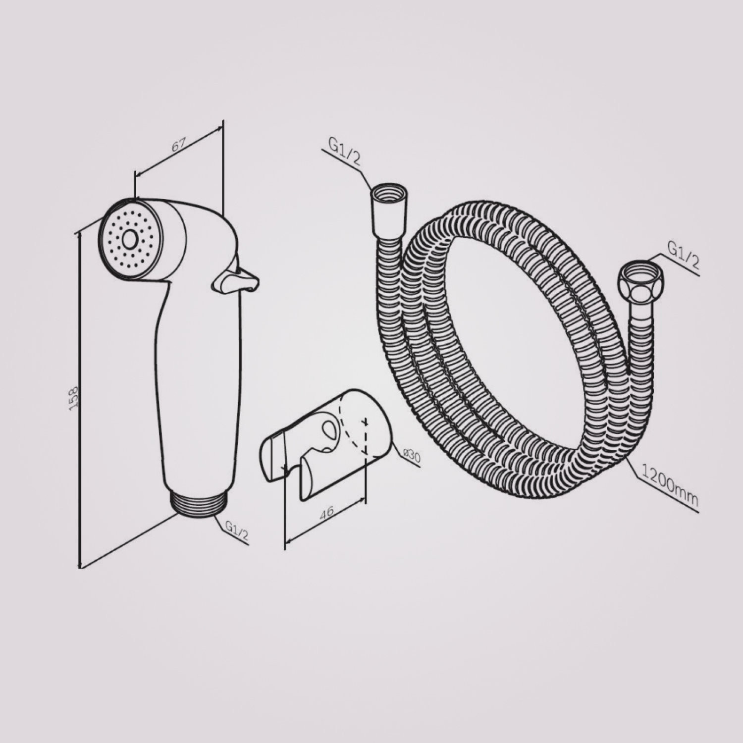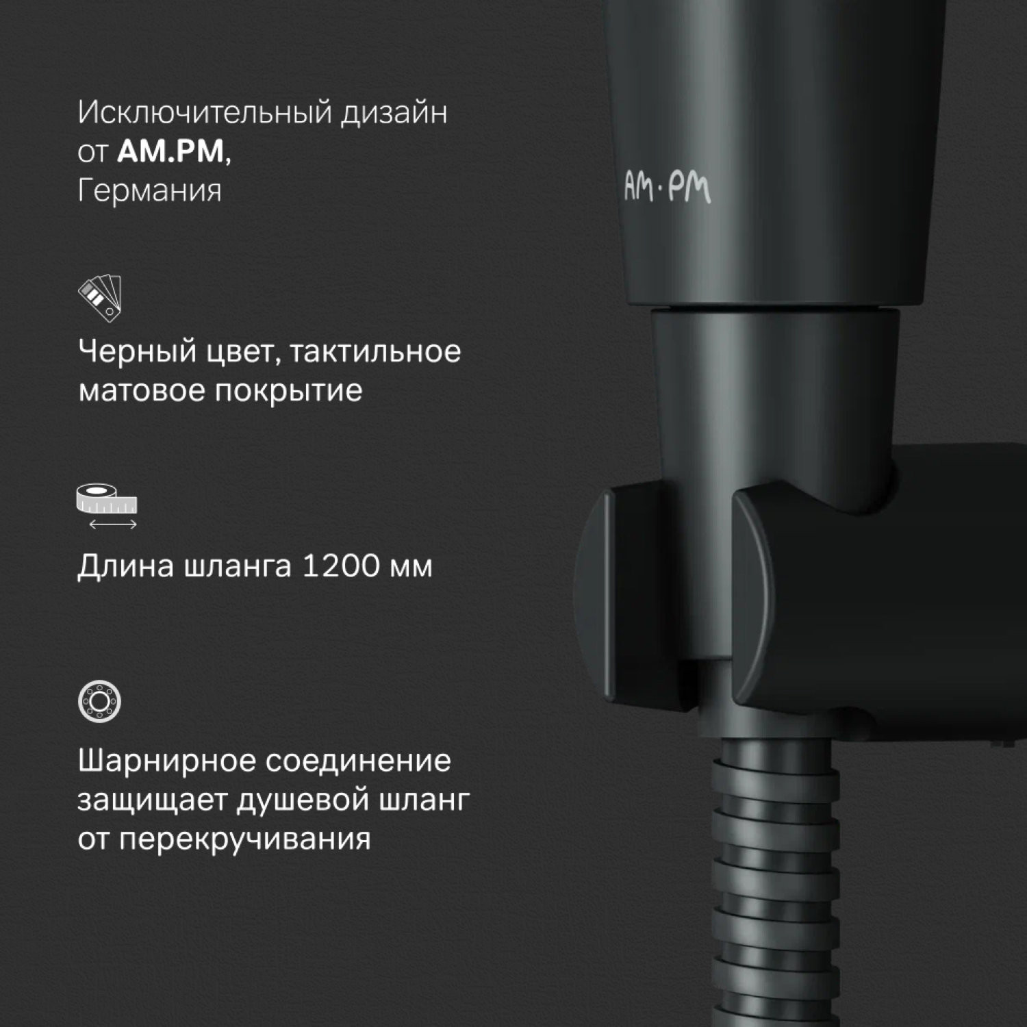 Гигиеническая лейка в комплекте с шланговым подсоединением-держателем и шлангом. Шарнирное соединение защищает душевой шланг от перекручивания. Гибкая конструкция, защищенная от изломов и повреждений. Удобная для комфортного использования длина шланга 1200 мм. Трендовый черный матовый цвет |