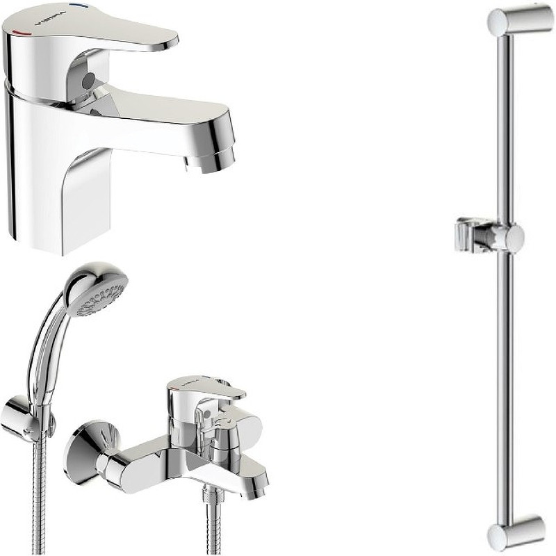 В комплекте поставки: смеситель для раковины, смеситель для ванны с душевым гарнитуром, штанга