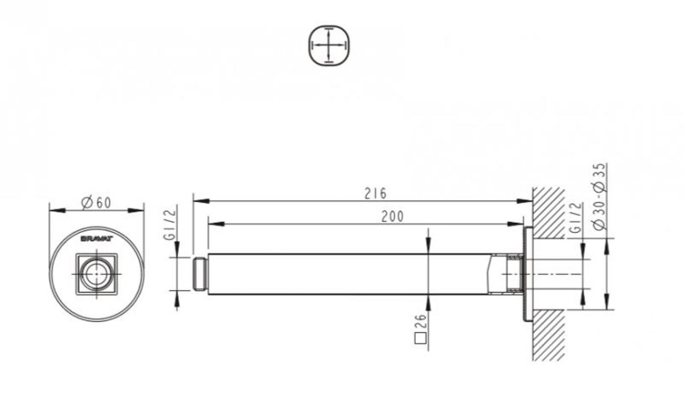 Кронштейн верхнего душа Bravat P7436C-RUS, хром