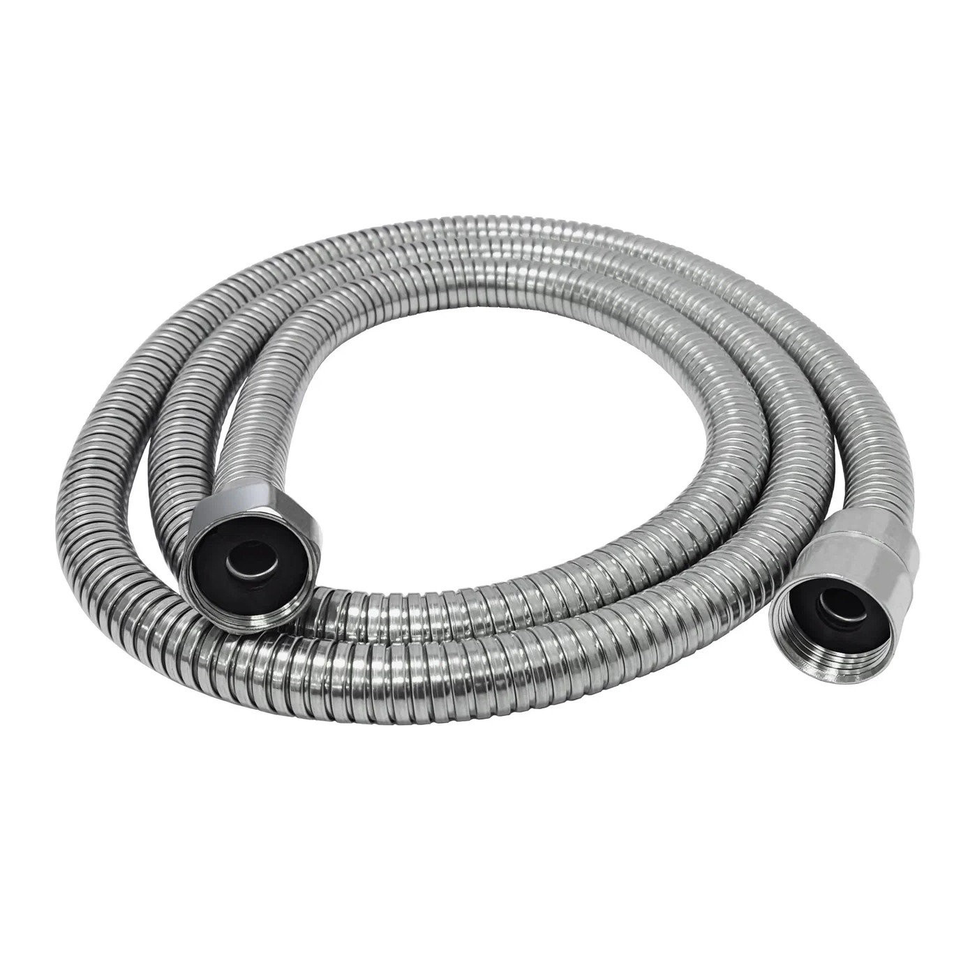 Основа шланга выполнена из EPDM резины, а сверху покрыта стальной обмоткой из нержавеющей стали тип - двойной замок. Обмотка защищает внутреннюю часть от агрессивного действия высоких температур, а также от механических повреждений. На краях расположены гайки для присоединения к смесителю и лейке диаметром 1/2", длина 150 см.
