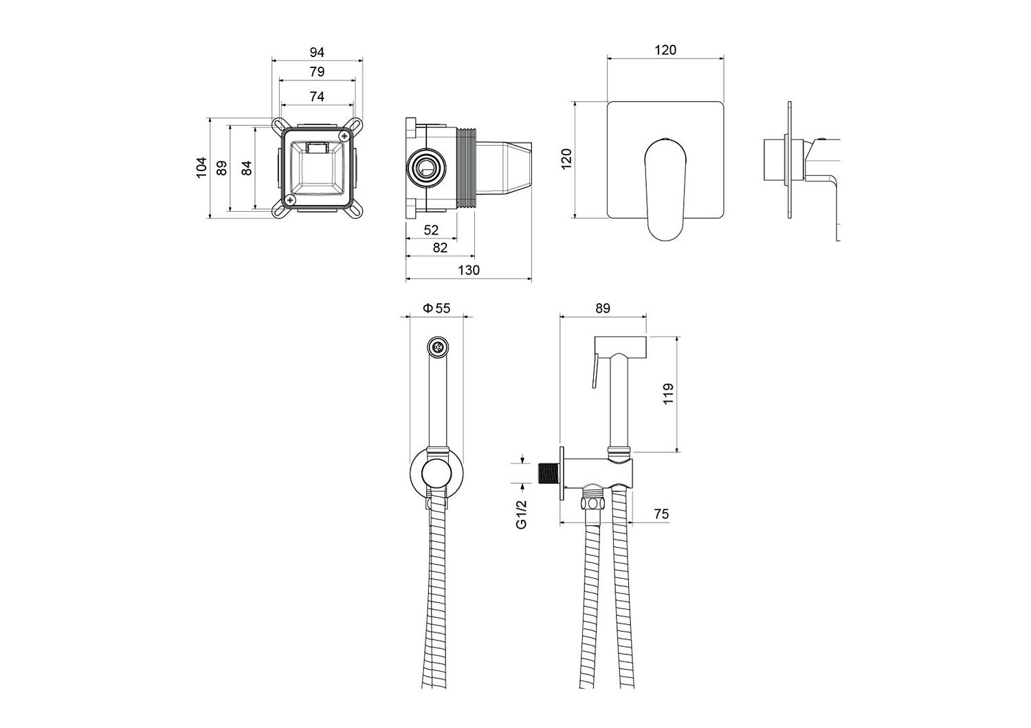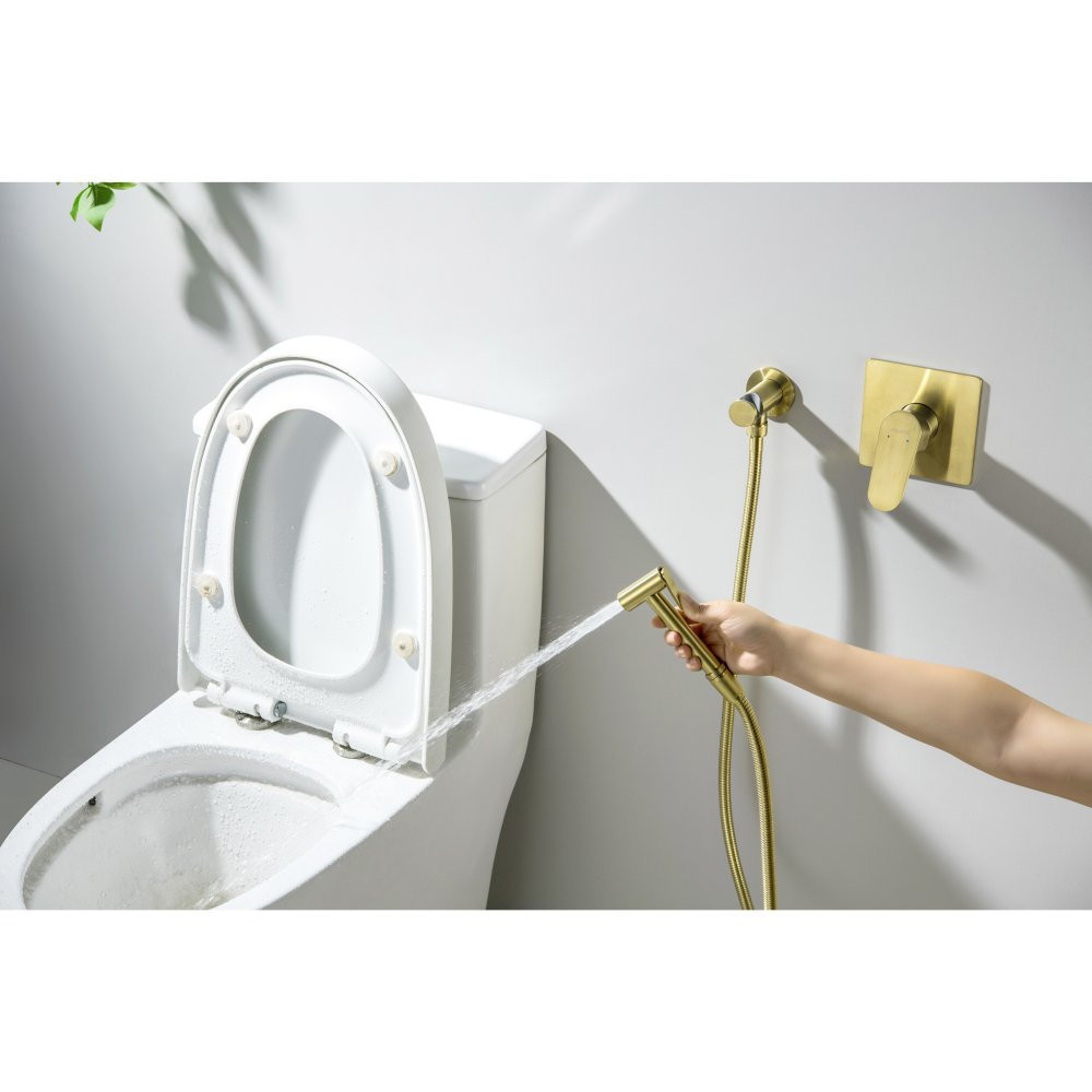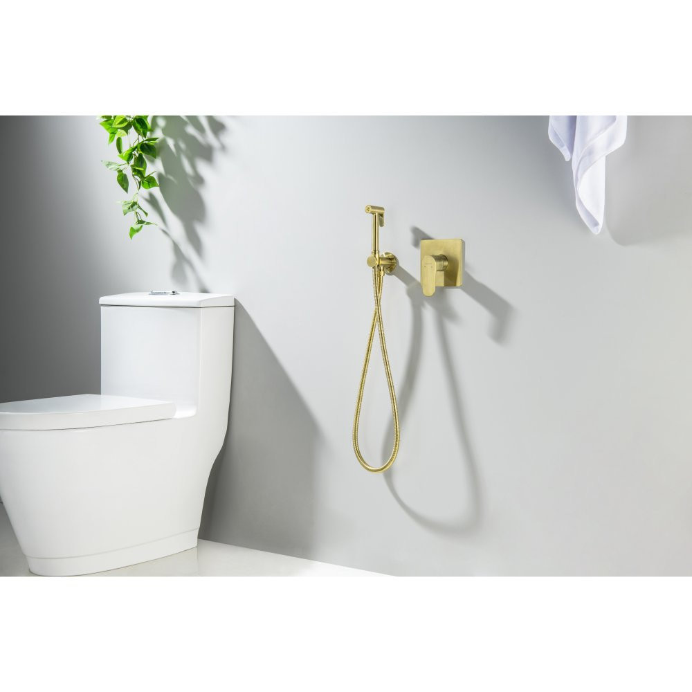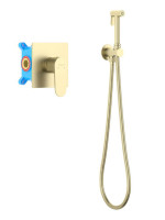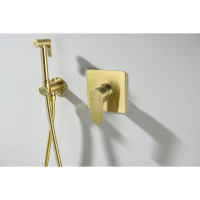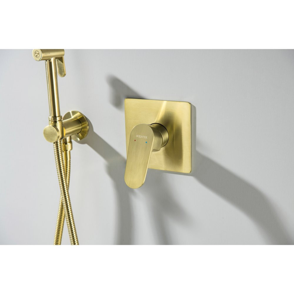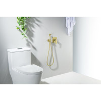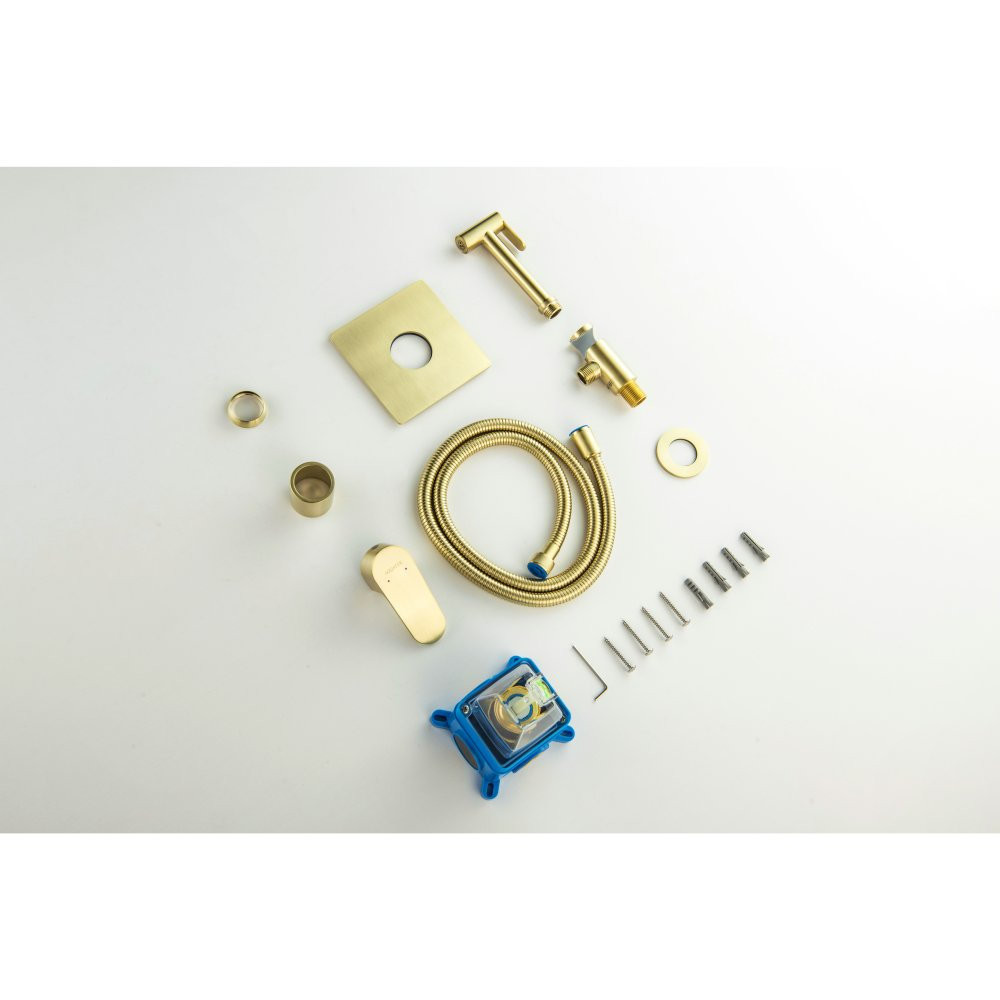 AQ1219BG ОБЕРОН набор с гигиеническим душем (смеситель + гигиеническая лейка + шланг + шланговое подсоединение с держателем), шлиф. золото