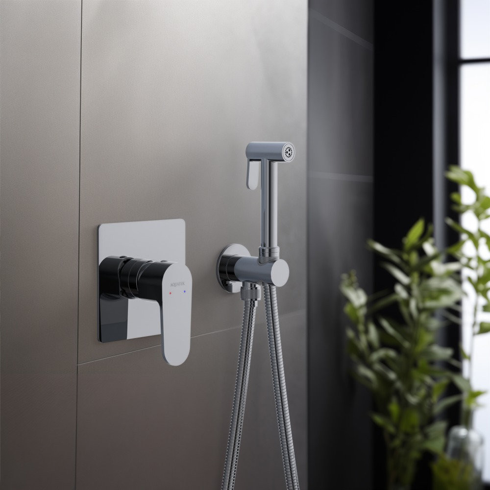 AQ1219CR ОБЕРОН набор с гигиеническим душем (смеситель + гигиеническая лейка + шланг + шланговое подсоединение с держателем)