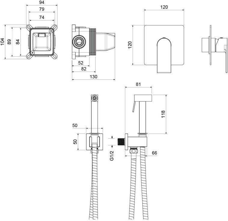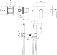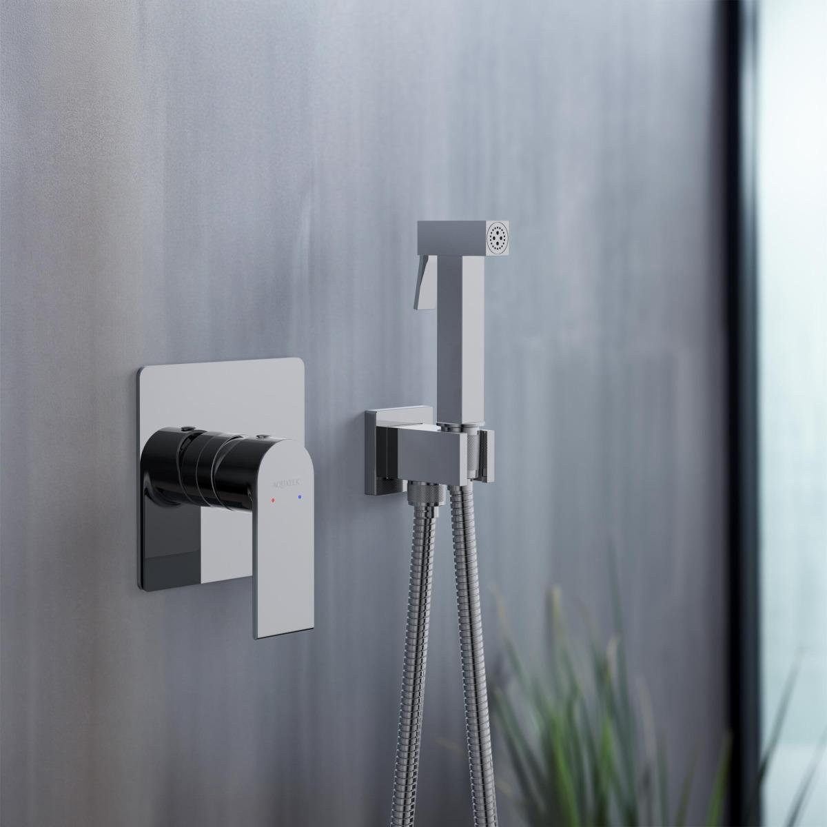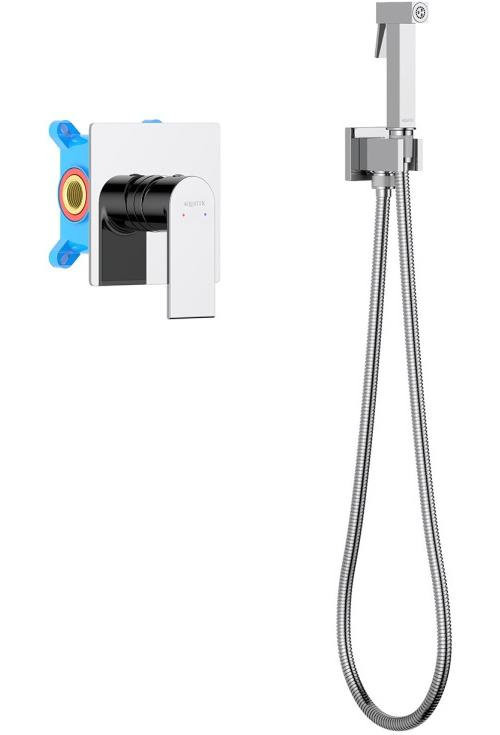 AQ1419CR ЛИРА набор с гигиеническим душем (смеситель + гигиеническая лейка + шланг + шланговое подсоединение с держателем)