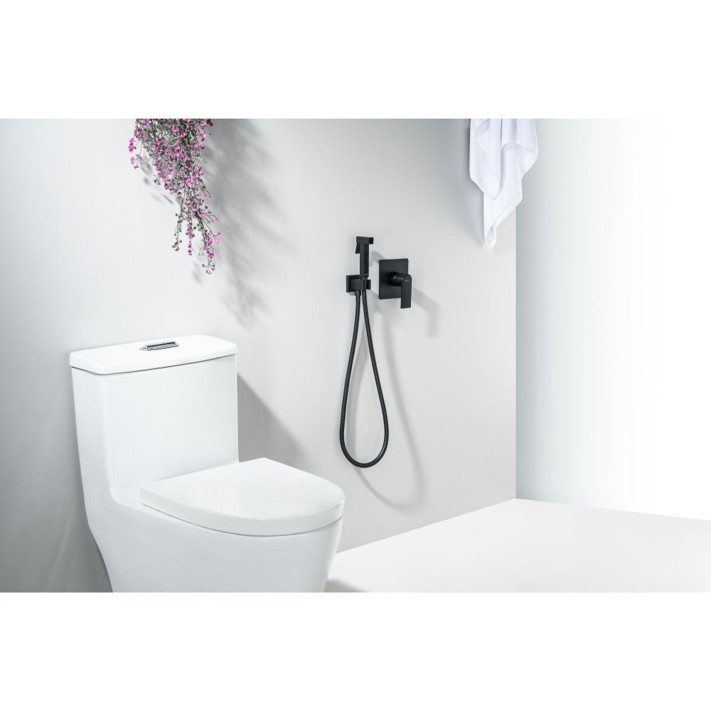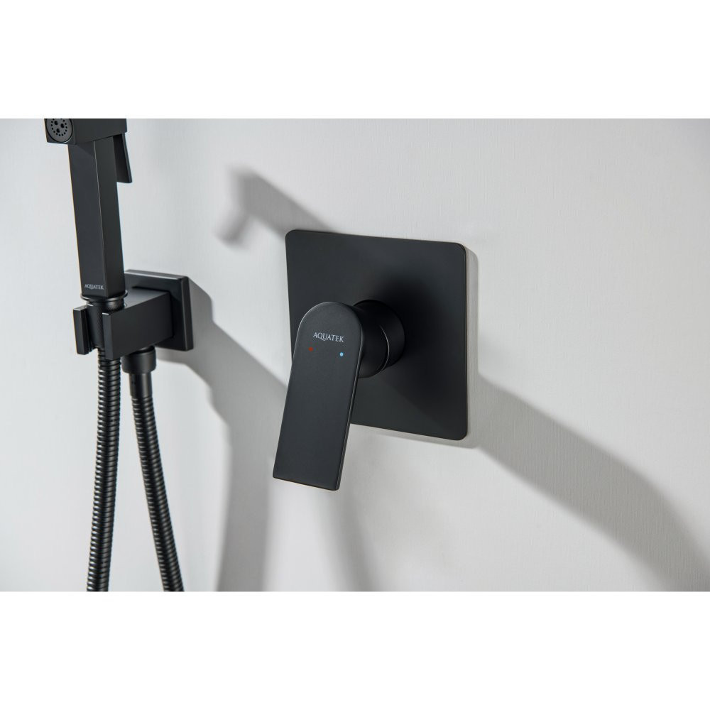 AQ1619MB ЛИБРА набор с гигиеническим душем (смеситель + гигиеническая лейка + шланг + шланговое подсоединение с держателем), матовый черный