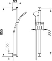 59587010922 IXMO ДУШЕВОЙ КОМПЛЕКТ: Душевая штанга 855 мм + ручная душевая лейка с нормальной струей + шланг1600 мм, хром