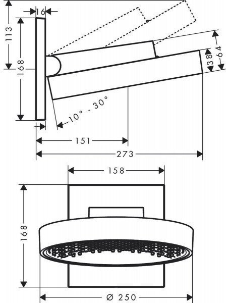 26226700 HG Rainfinity 250 1jet верхний душ с настенным держателем матовый белый