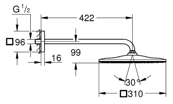 26563000 Rainshower 310 Mono Верхний душ 1 режим, с душевым кронштейном, хром