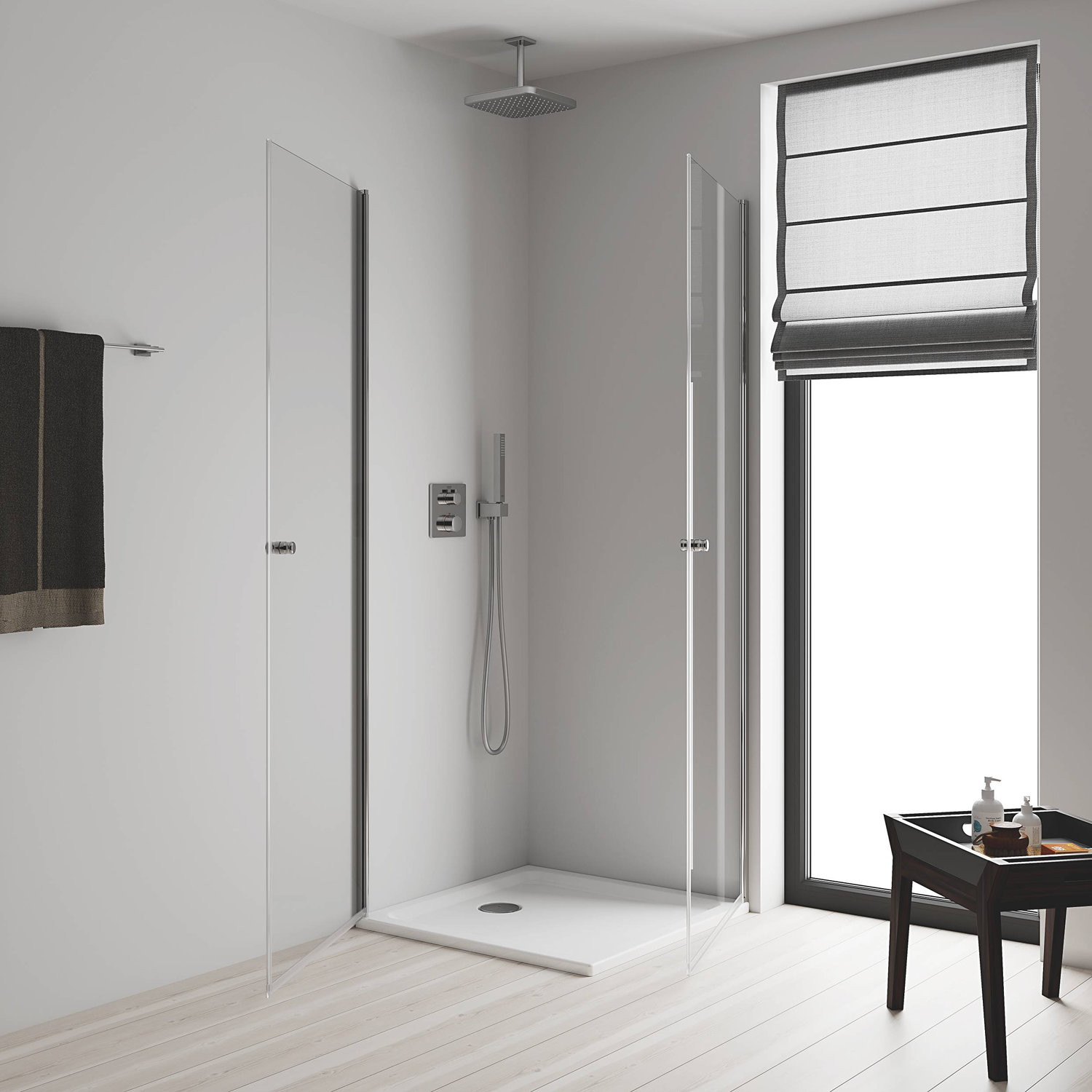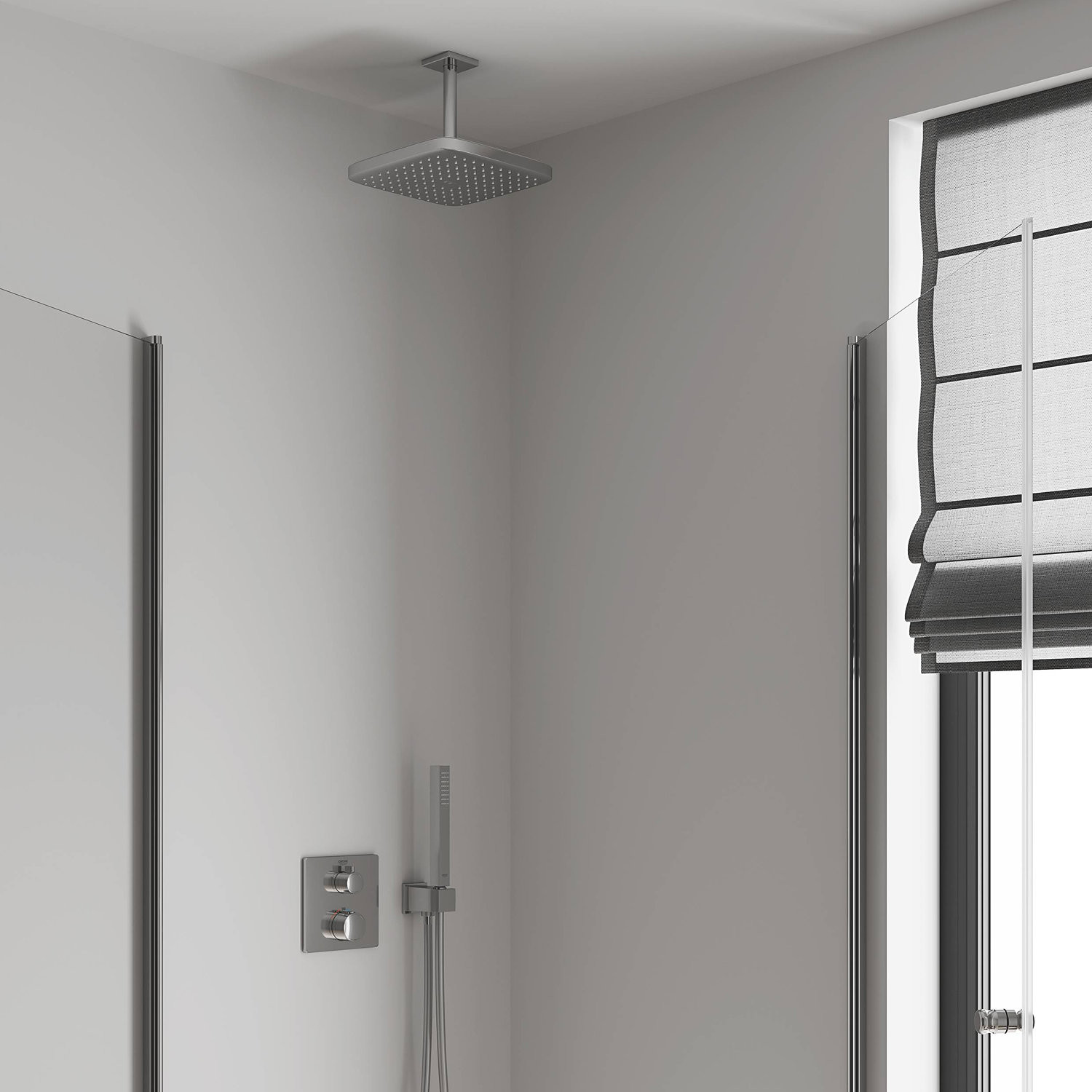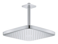 26688000 Tempesta CUBE 250 Верхний душ , квадратный (низ-хром, верх-белый) + Душевой кронштейн потолочный 142 мм, хром
