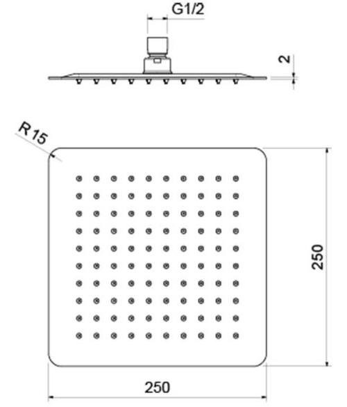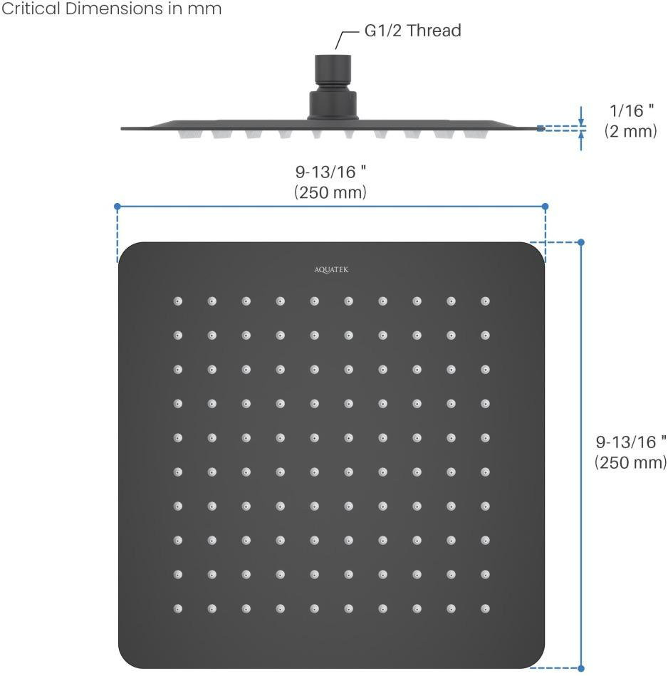 AQ2072MB квадратный верхний душ 250*250*2 мм, матовый черный