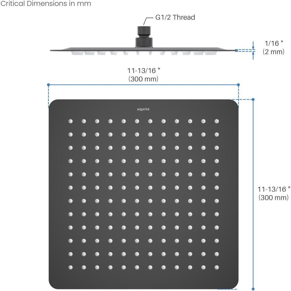 AQ2074MB квадратный верхний душ 300*300*2 мм, матовый черный