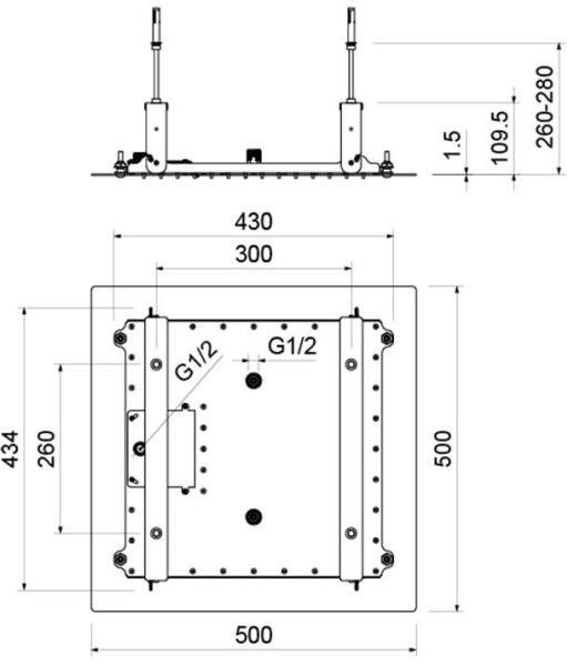 AQ2082CR верхний душ 500*500 мм, 2 jet (внешняя и скрытая часть)