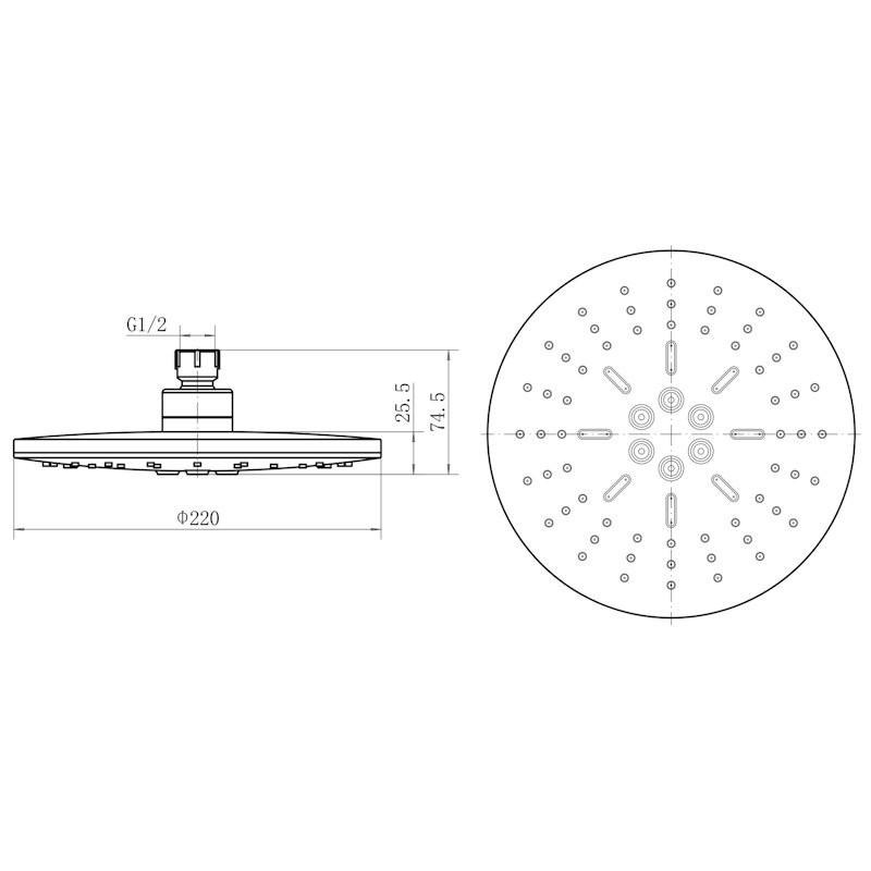 Форма верхнего душа: круглая;