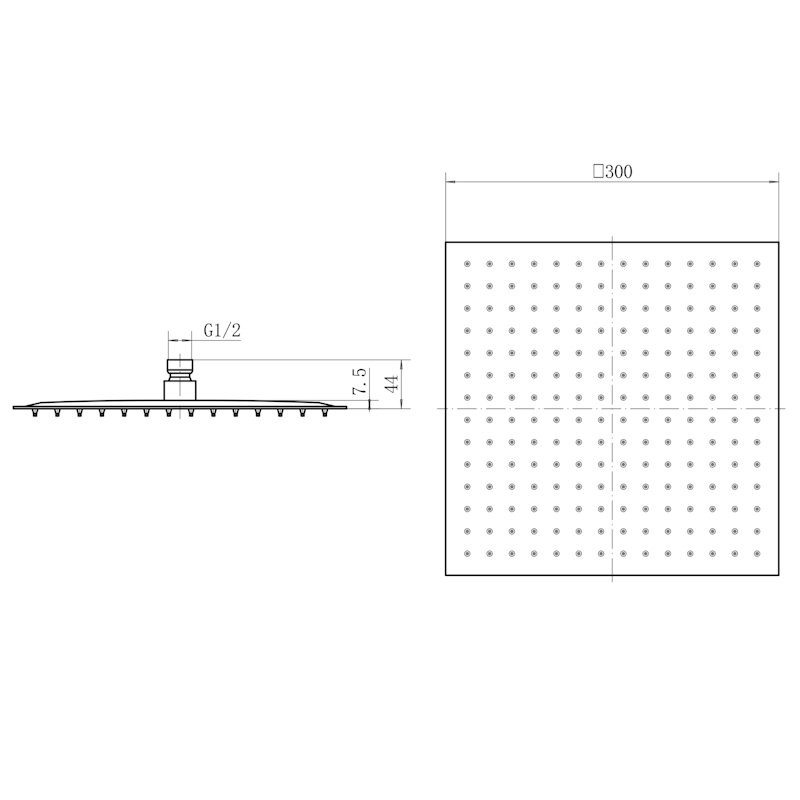 Форма верхнего душа: квадратная;