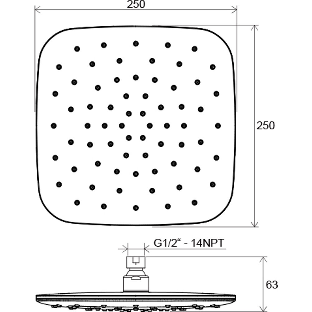 Верхний душ квадратный 250 мм 983.20 черный