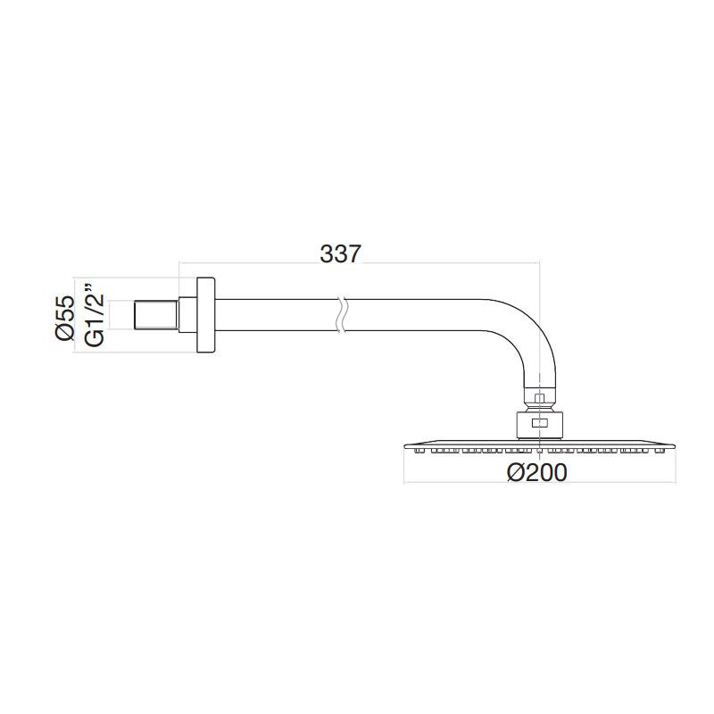 В комплект входит настенный кронштейн длиной 35 см, что упрощает установку. Стандарт подключения 1/2" гарантирует совместимость с большинством систем водоснабжения. Головка душа регулируется по наклону вдоль всей оси благодаря шарниру, что позволяет настроить поток воды максимально удобно для вас.