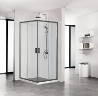 AQ ARI KV 09020BL Душевой уголок квадратный, двери раздвижные 900x900x2000 профиль черный, стекло прозрачное