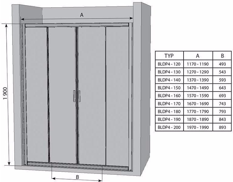 BLDP4-140 блестящий + Транспарент Blix душевая дверь раздвижная, четырехэлементная .