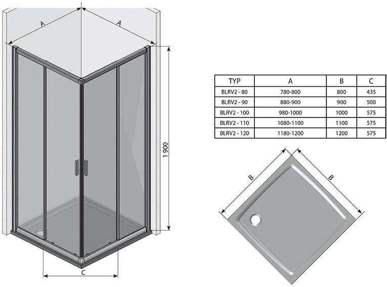 BLRV2K-80 дверь для комбинации с дверью блестящий + стекло Транспарент