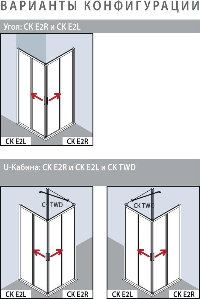 CADA XS CK E2L 12020 VPK 2-х ств.раздвиж. дверь для комбинации со второй дверью 1185-1210/2000, крепление слева, стекло прозр. ESG Clean
