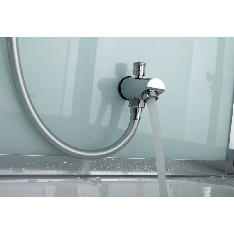 Комплектация: душевая кабина, излив, душевой гарнитур, полки, смеситель-термостат, сифон, экран;