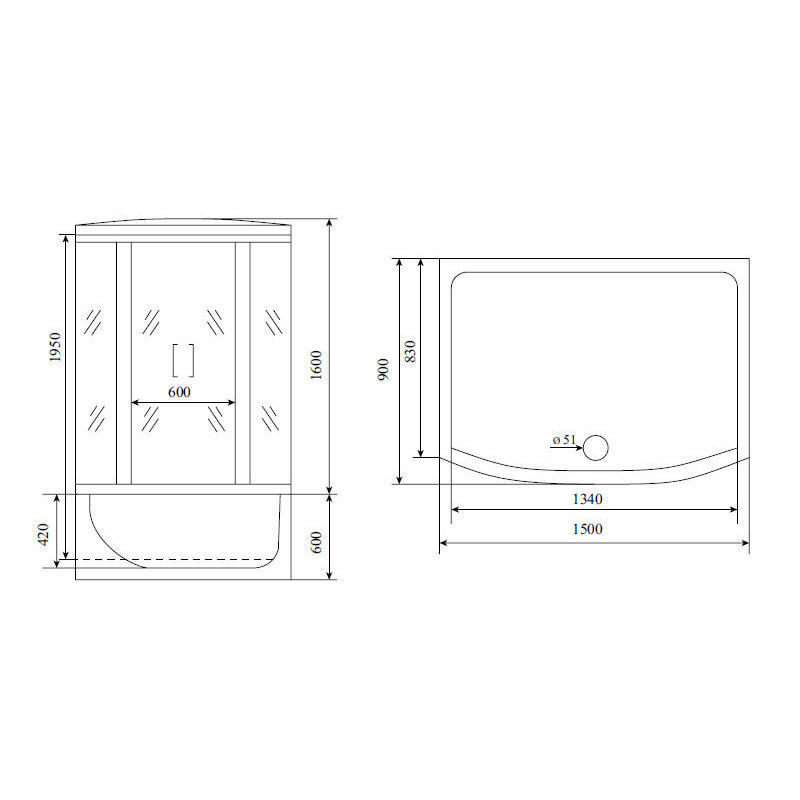 Комплектация: душевая кабина с радио, вентилятор, зеркало, полка, ручной душ, верхний душ, подсветка;