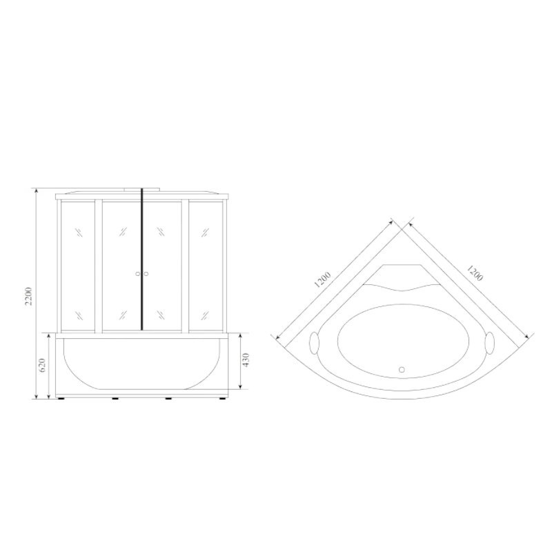 Комплектация: душевая кабина с верхним душем, полка, сиденье, вентилятор, подсветка, ручной душ;