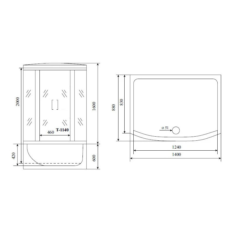 Душевая кабина (душевой бокс) Timo Standart T-1140, 140x88x220